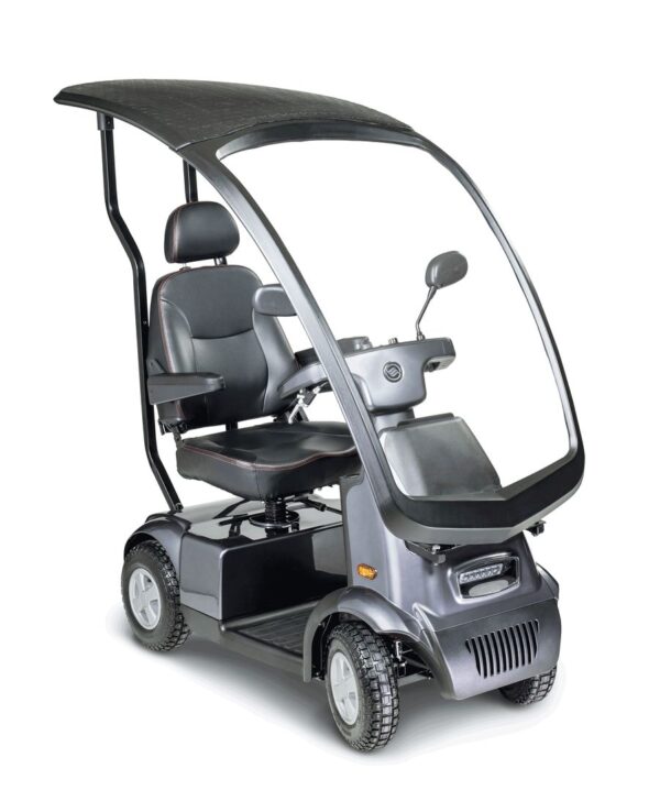 This is by far the best medium range mobility scooter in the market today. This scooter can be used either left of right handed and is also suited to those with only the use of one arm. Steering is separate from the front basket so is easier to steer. Comes standard with Key locked POD on the rear and a key locked basket on the front. Comes standard with 50 amp batteries or if you wish you can upgrade to 75amp batteries to provide a greater driving range. Available in Gray , Silver, Red and Blue. The new model has a canopy option that provides a solid windscreen solid roof . The max speed for this scooter is of 10km/hr which complies with the max legal speed for mobility scooter in Australia. See Scooter Assessories to find out more>