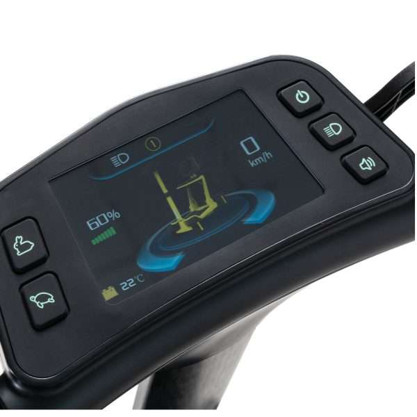 The Go Go® Carbon is the perfect blend of strength and portability. Built with a lightweight carbon fibre frame, this 4-wheel scooter offers exceptional durability while weighing just 16 kg without its (lithium) battery. It folds down in seconds for convenient transport and storage, and can be towed like luggage through airports and other environments. Powered by an NFC reader and digital display screen, the Go Go Carbon is designed for a lifestyle on the go.